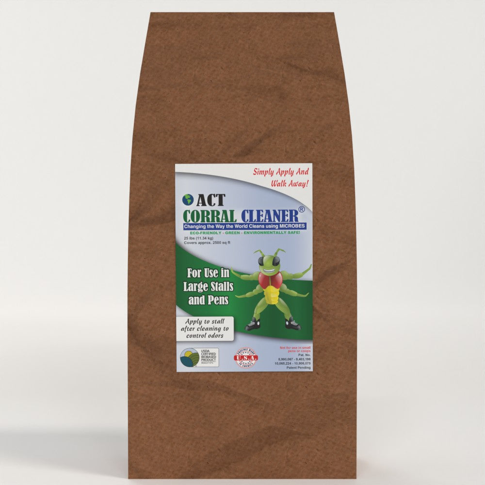 ACT Corral Cleaner is a natural, dry powder solution formulated to eliminate odors and break down organic waste in animal enclosures. Whether you're managing a horse barn, chicken coop, cattle corral, or small animal pen, ACT's microbial-based formula helps maintain a clean, odor-free, and healthier environment for both animals and caretakers.